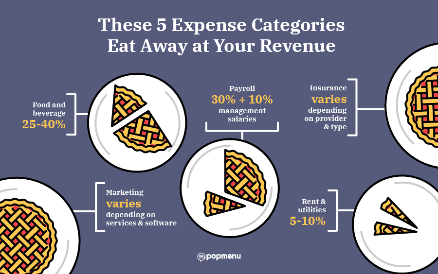 These refer to the costs associated with having a physical location for your restaurant. These include items like rent or mortgage, building insurance, repair and maintenance costs, janitorial services, utilities, and property taxes.