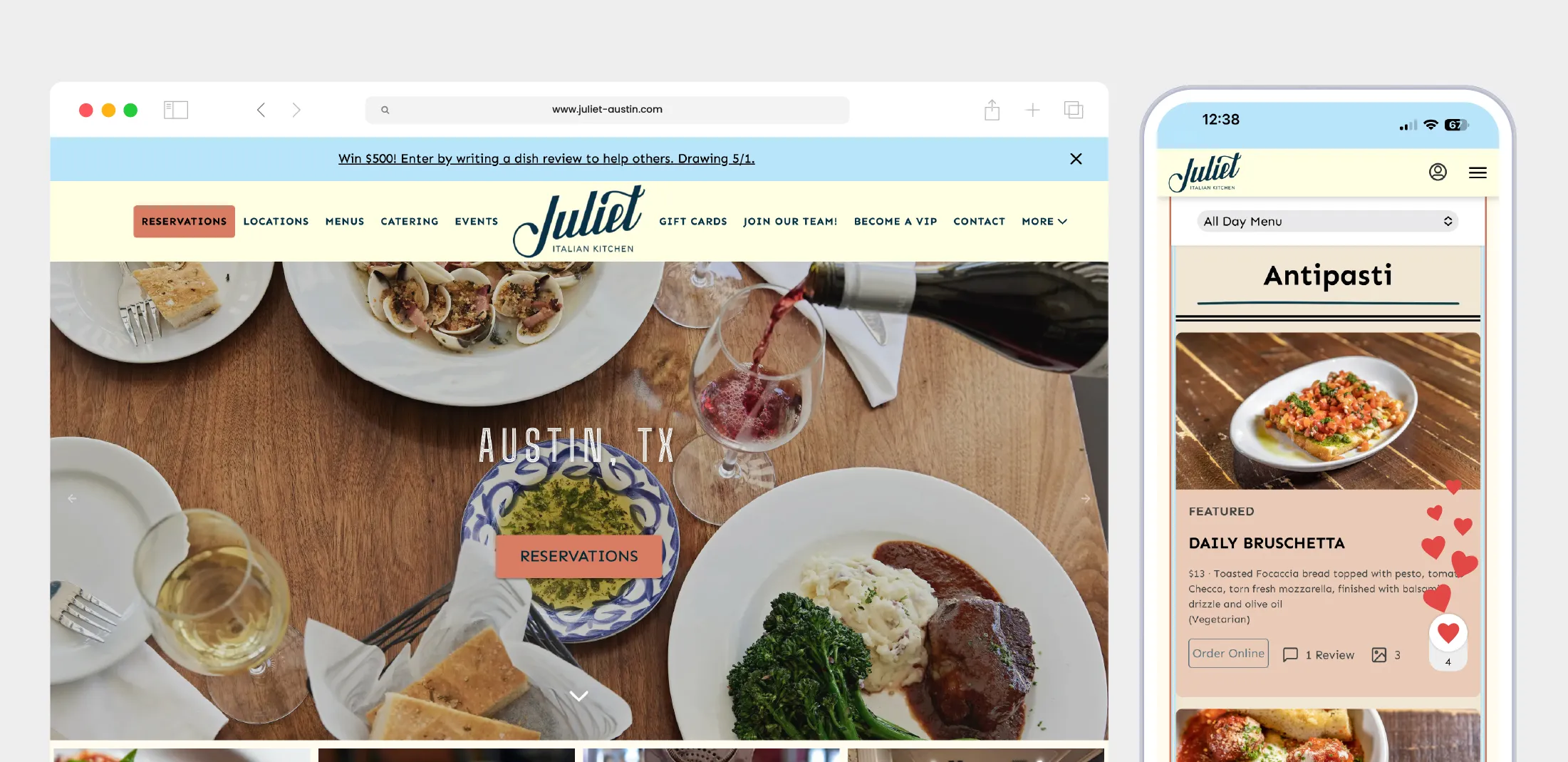 Increase orders and reservations with a dynamic menu that features dish reviews.
